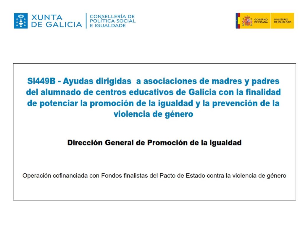 Este proxecto é posible grazas ao apoio da Consellería de Política Social e Igualdade da Xunta de Galicia, así como á colaboración activa das AMPAS asociadas e dos centros educativos participantes, que fan realidade esta proposta dirixida a familias e alumnado.